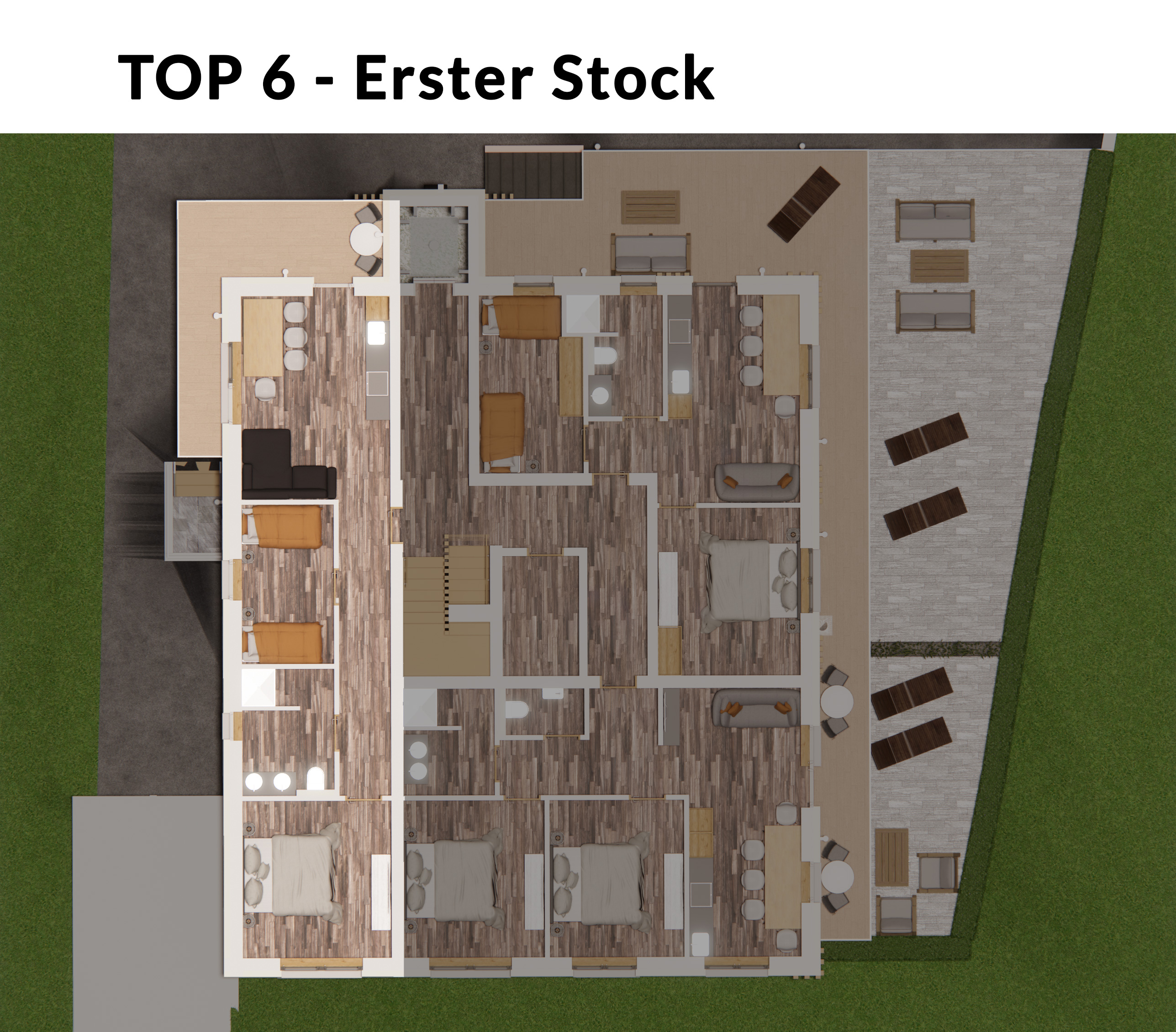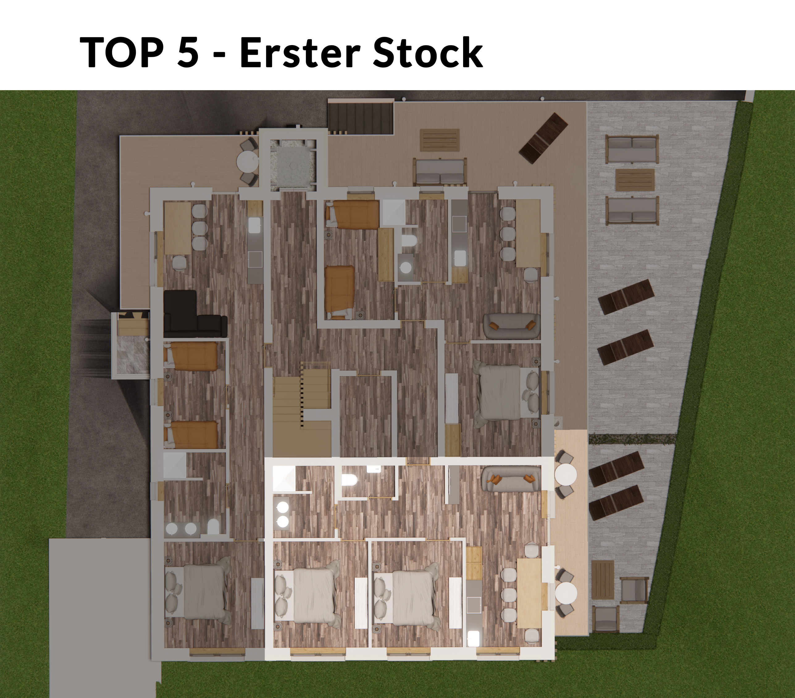 - Top 2 & Top 5 sind ca. 60 m² groß (Kategorie B)